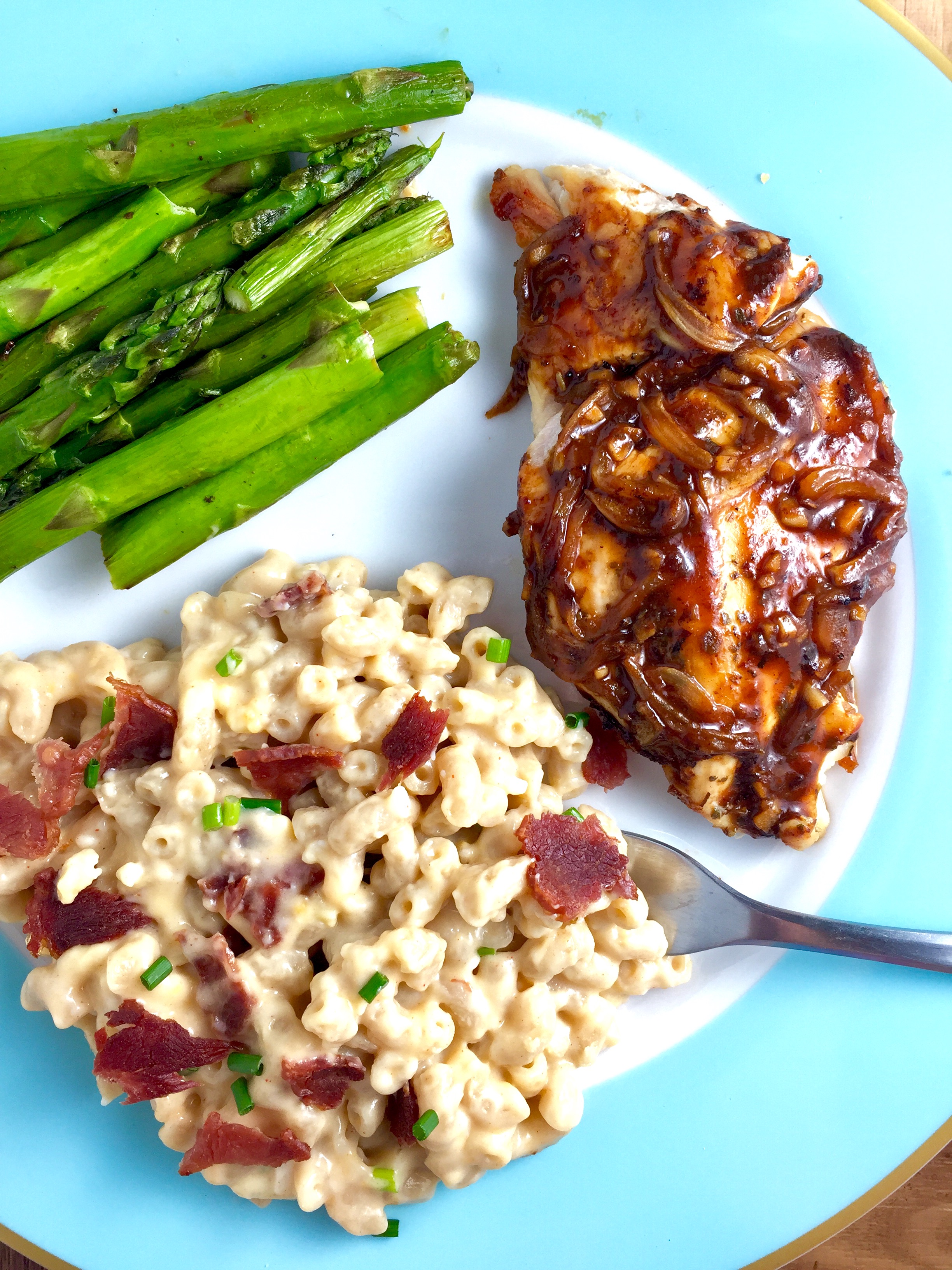 Heavenly with BBQ chicken and simple grilled or roasted veggies. You can’t see me, but I’m doing my comfort-food happy dance.
