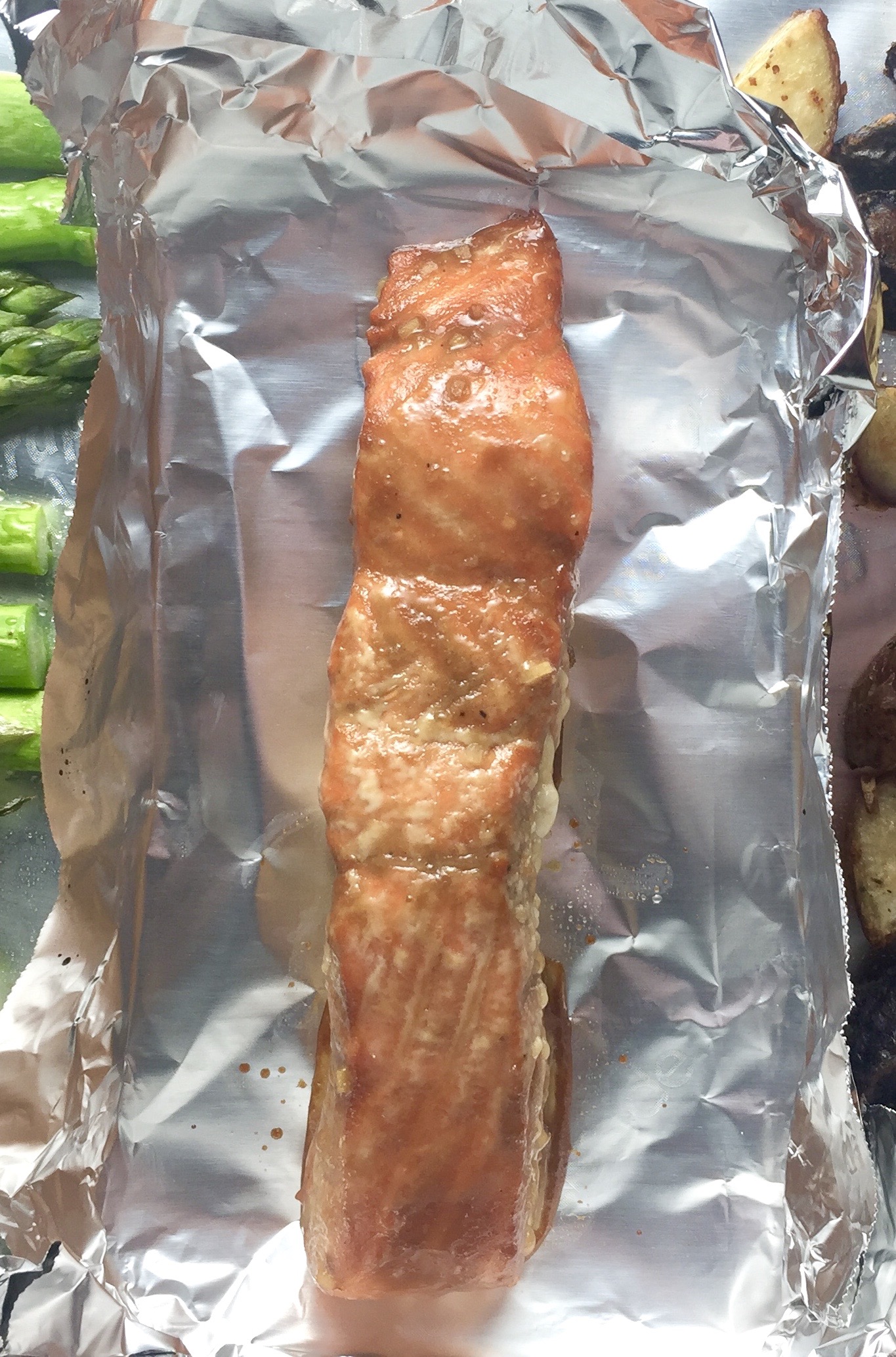 - Transfer to plates; spoon any thickened sauce from the foil over the salmon.