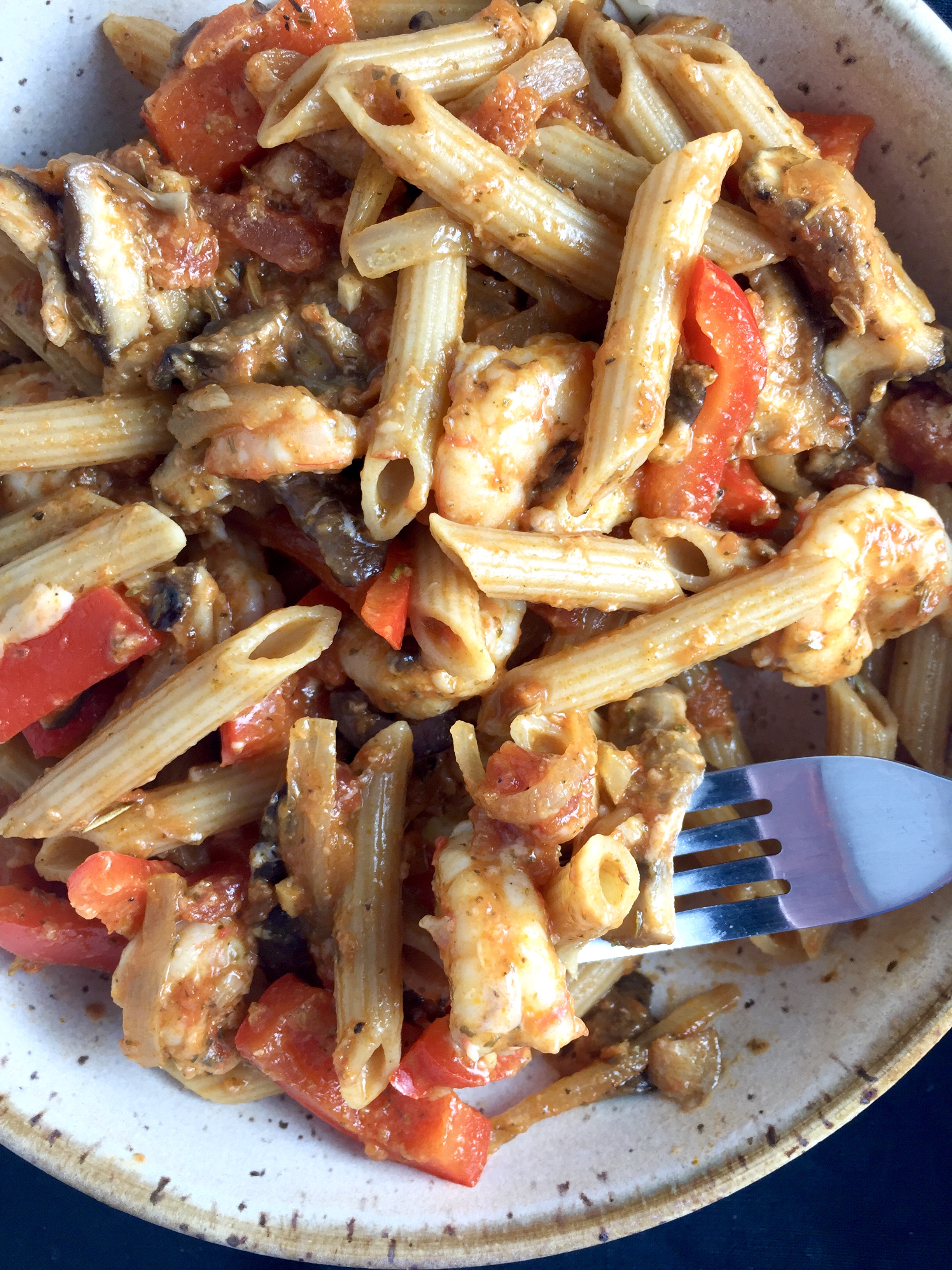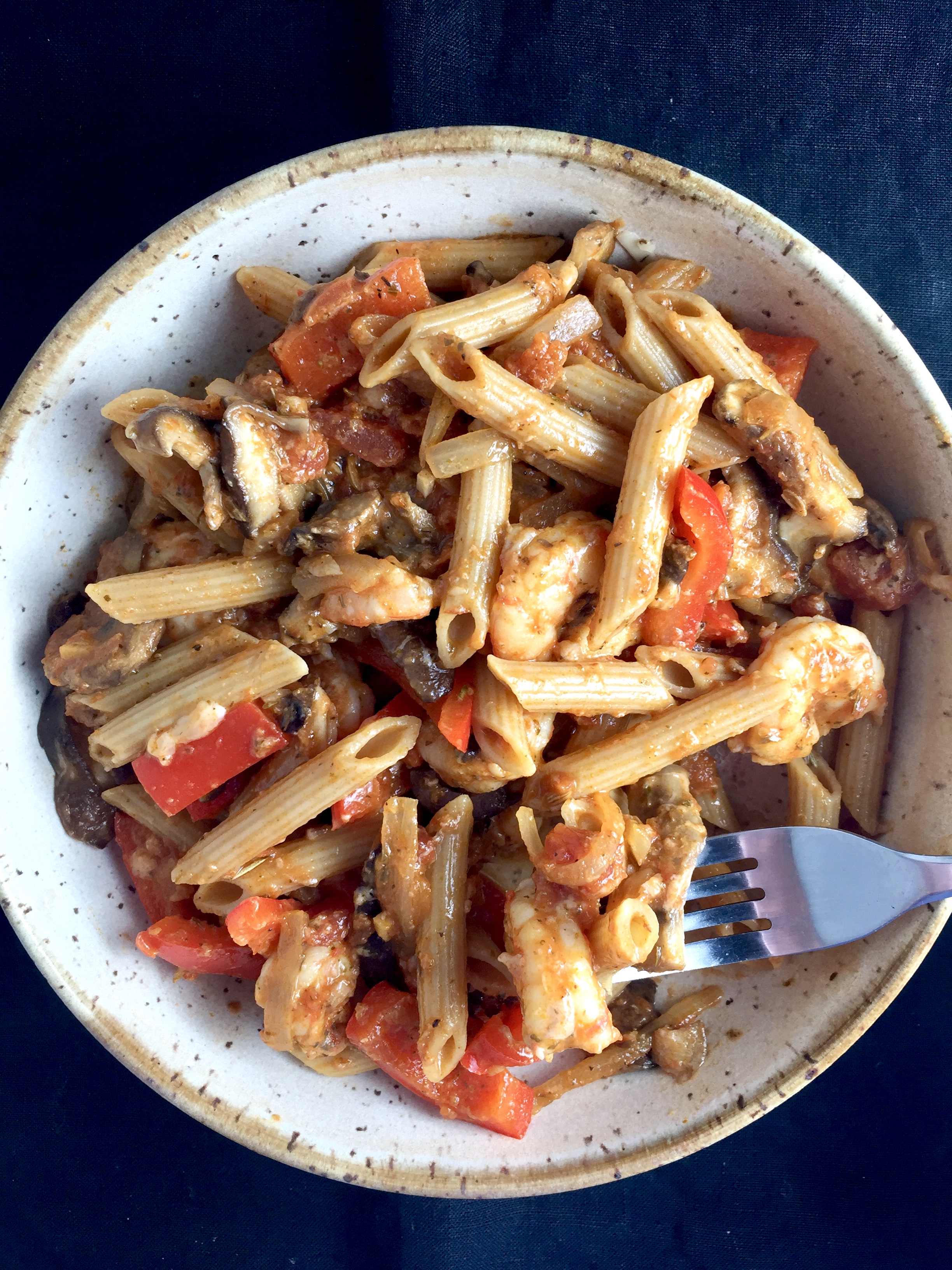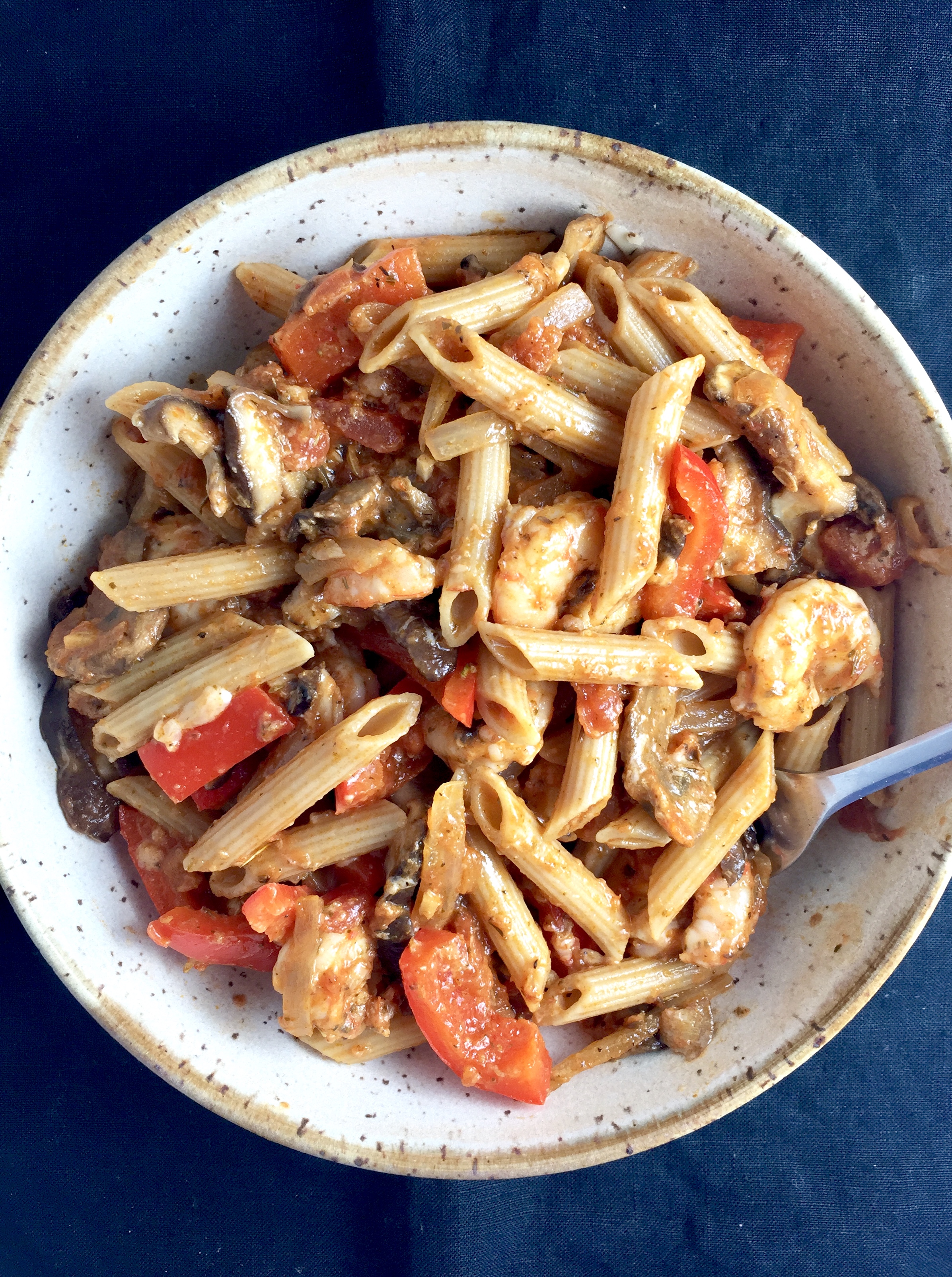 Simply sautéed shrimp, mushrooms, peppers, onions, and garlic smothered in an herby pomodoro sauce and tossed with whole grain penne, kalamata olives, and freshly shredded Italian cheese. Aka the ultimate bowl of wholesome, flavor-loaded Mediterranean comfort. And this shrimp penne can be ready in minutes!