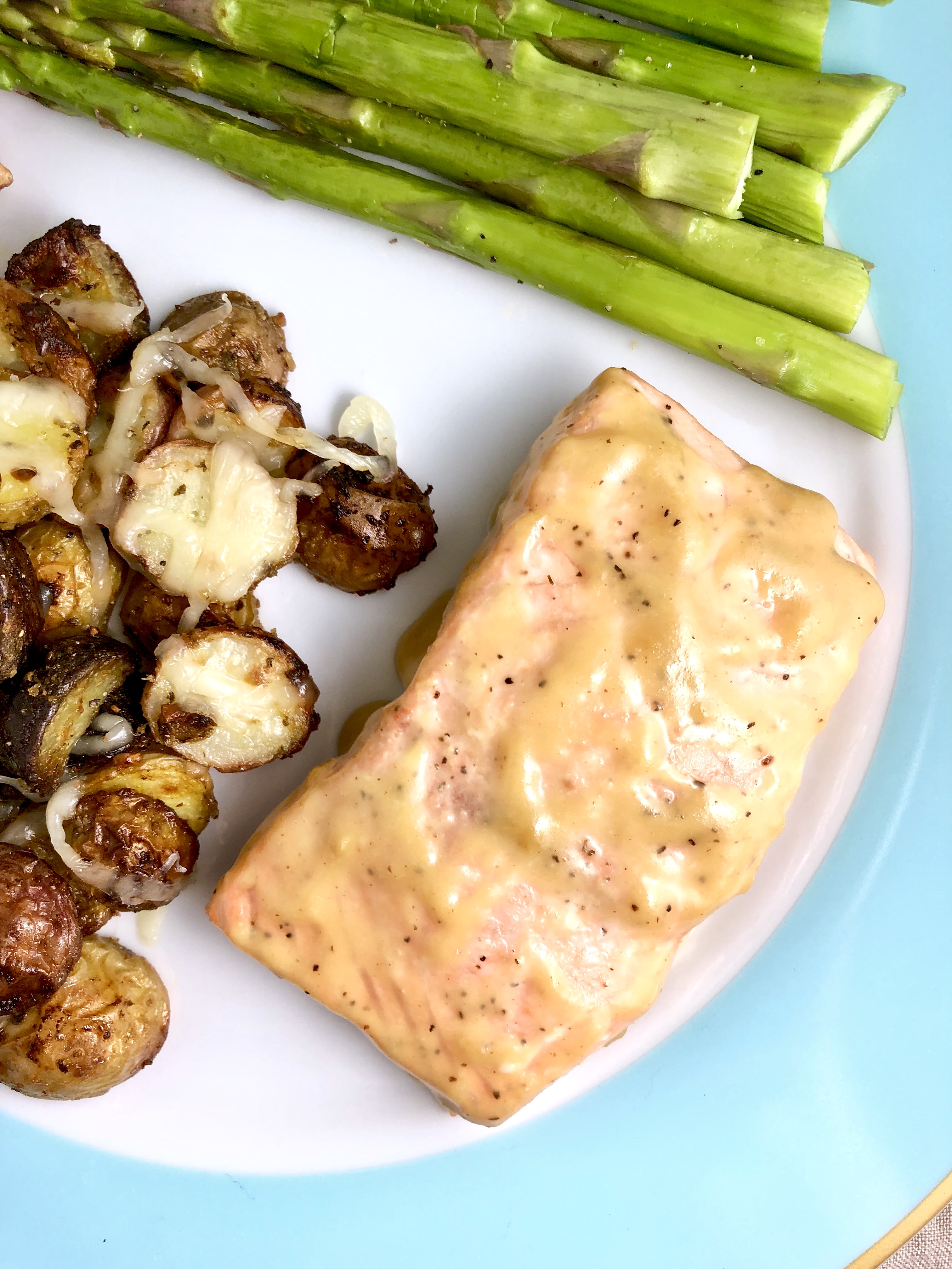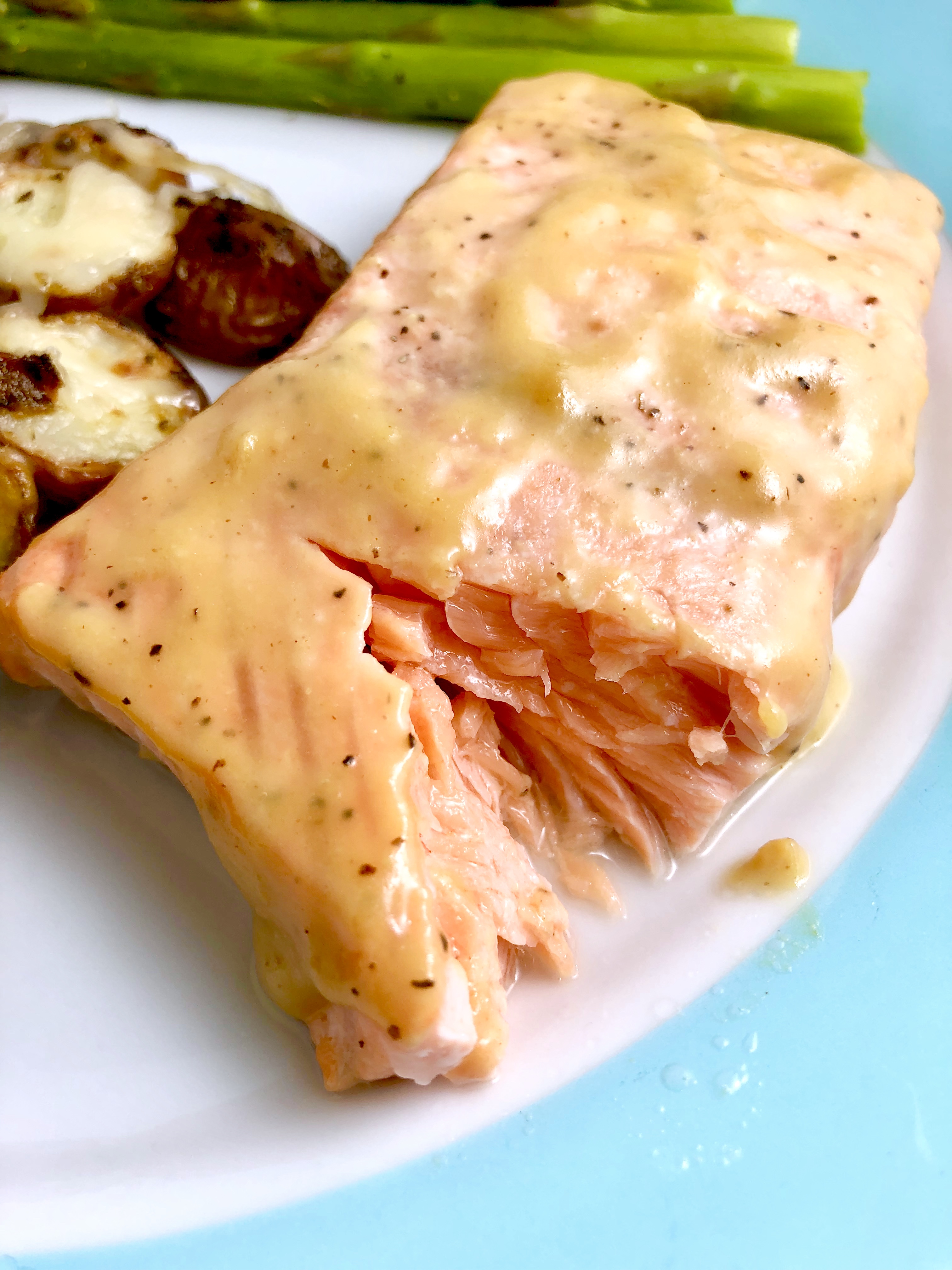 June is almost here, my favorite colorful plates are out, and I’m in full swing filling them up with vibrant summery foods. Although, luckily, this salmon recipe is perfect year-round! Just a few simple ingredients for a sauce that will rock all your preconceived notions of a healthy salmon dinner.