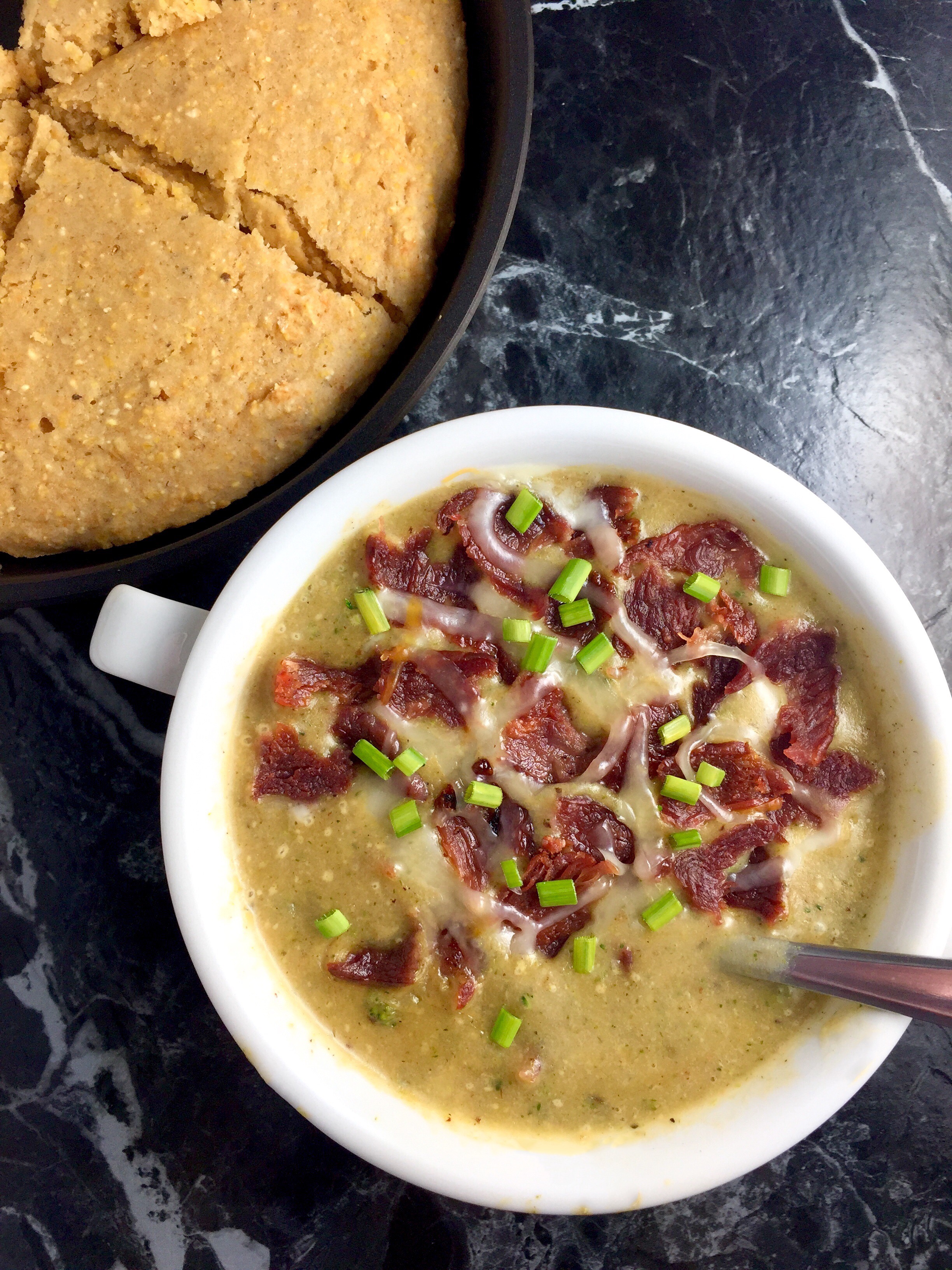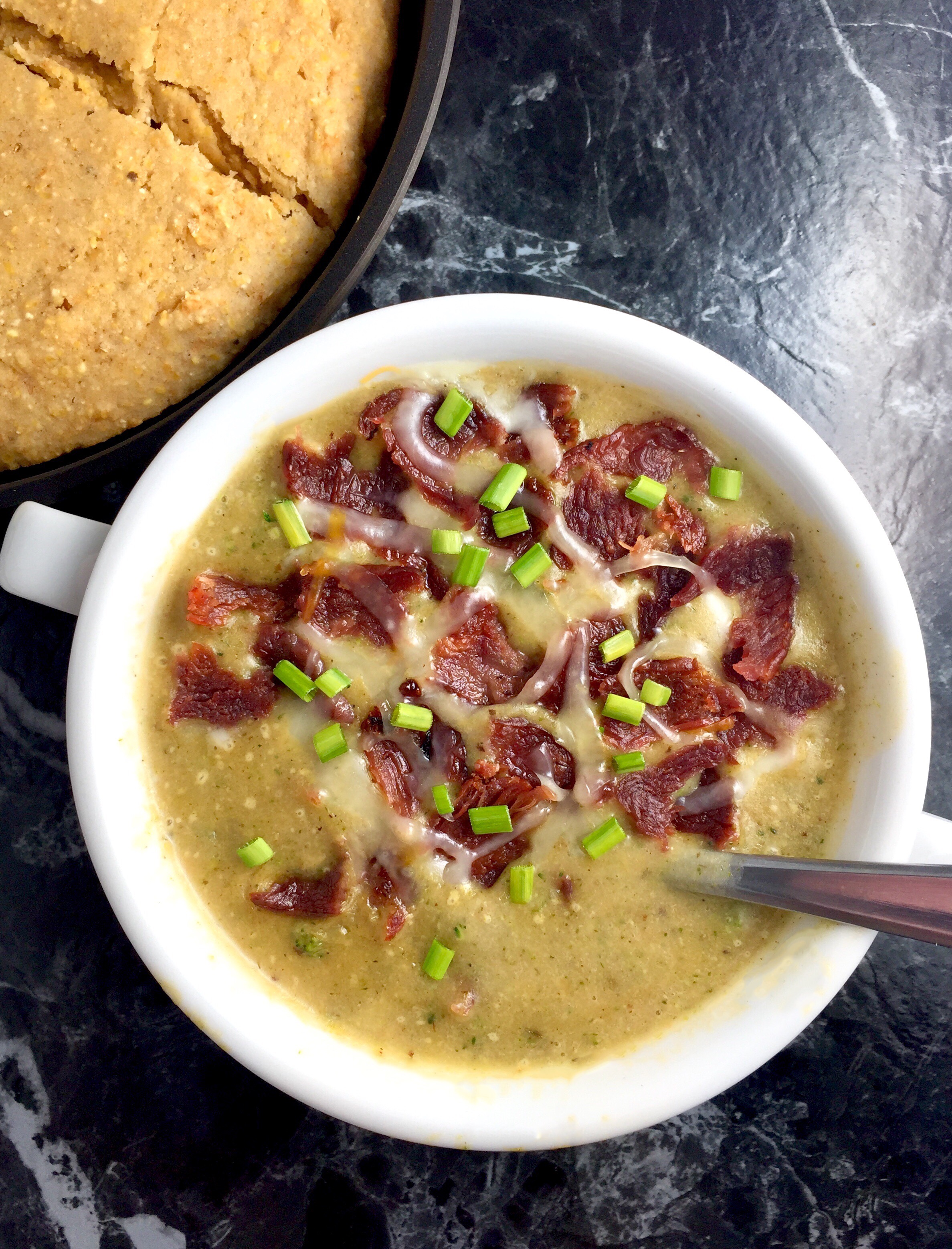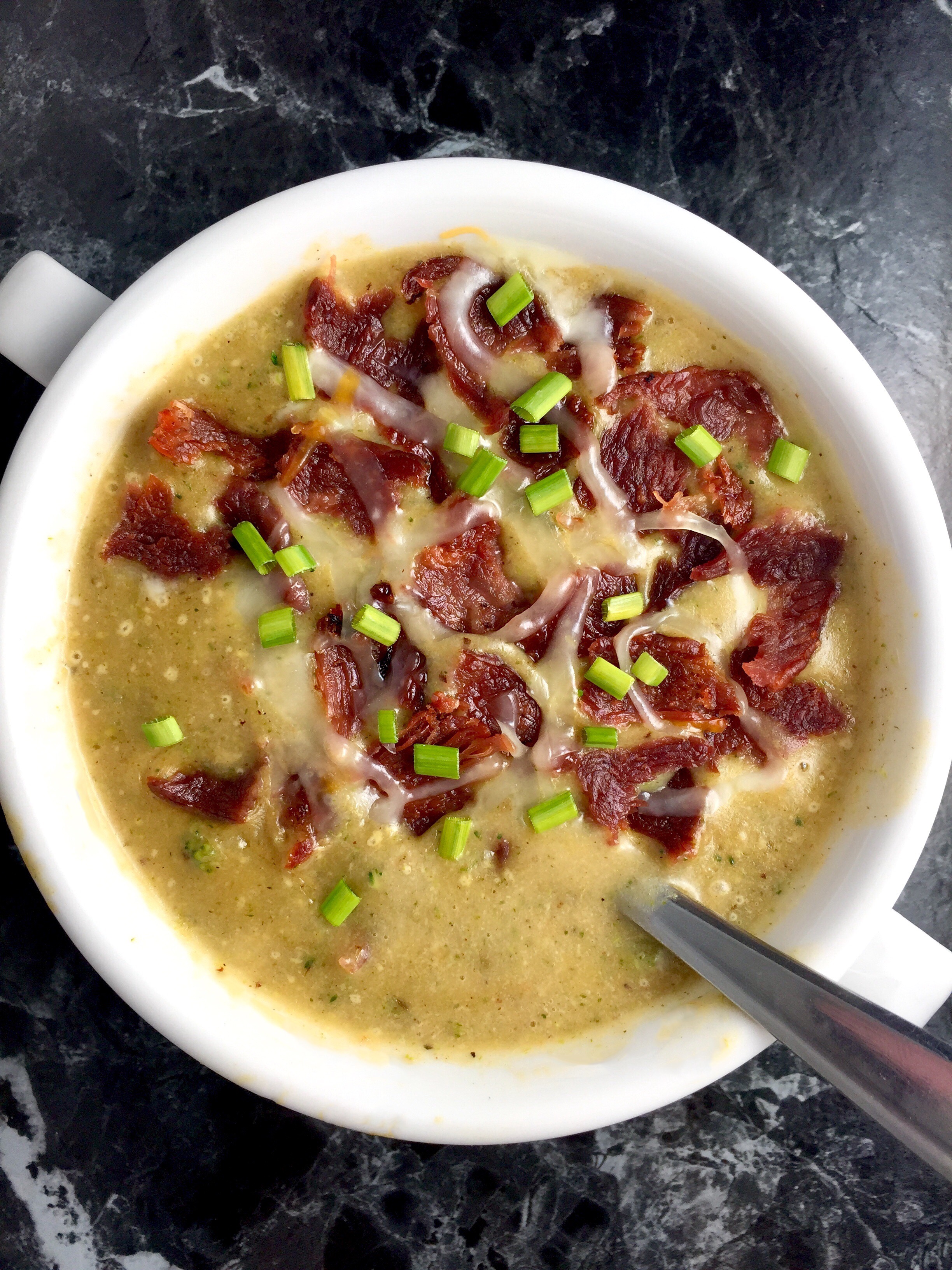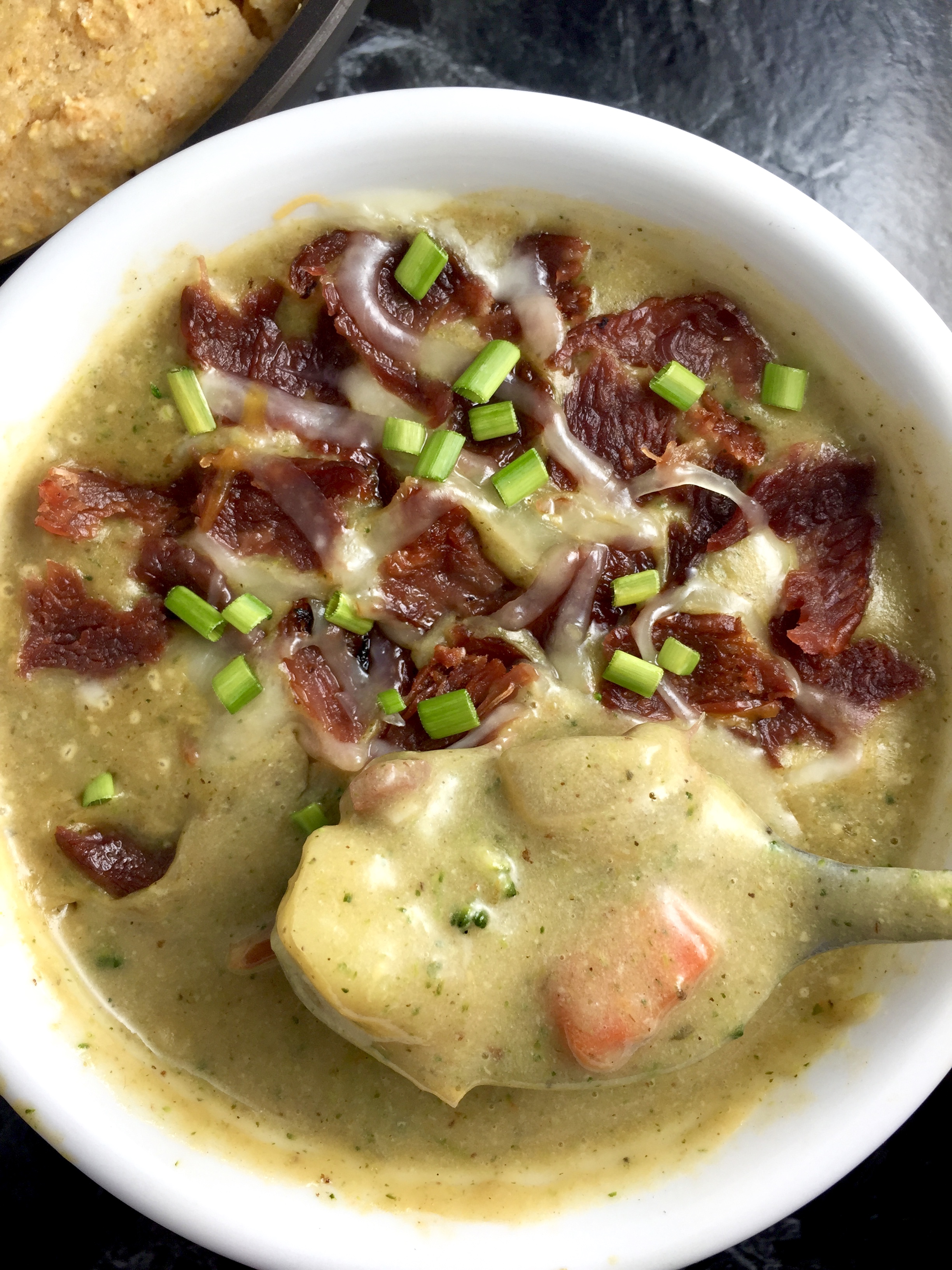This thick, smooth and creamy, soul-warming soup is loaded with wholesome veggies and flavor from Herbs de Provence, garlic, sharp cheddar, and smoky bacon. (And you’d never believe it’s made with no heavy cream or butter, and gluten-free!)