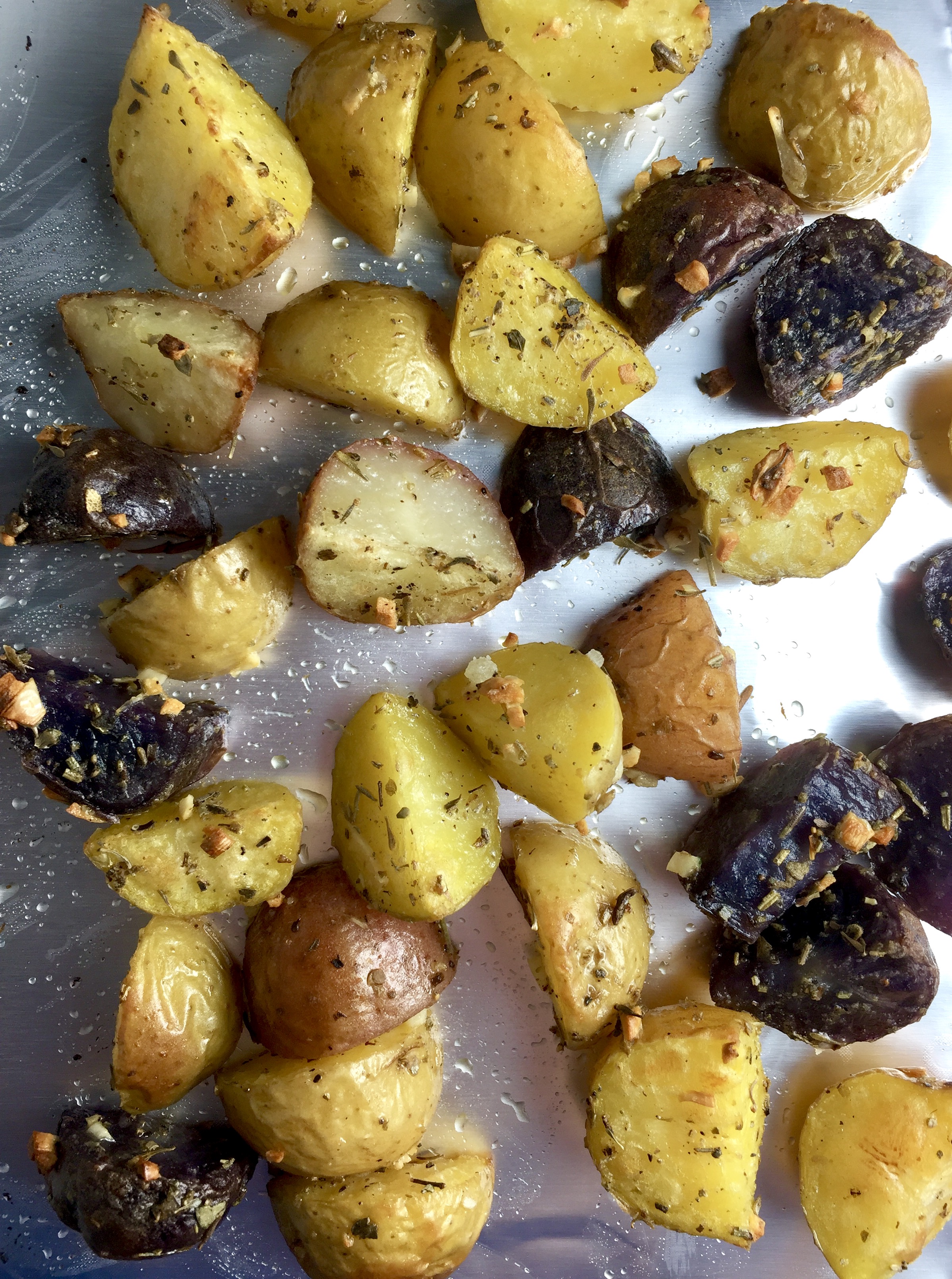Steaming the potatoes for about 10 minutes before roasting makes for an amazing texture. They’re already partially tender, so in the oven they crisp up on the outside and become melt-in-your-mouth on the inside!