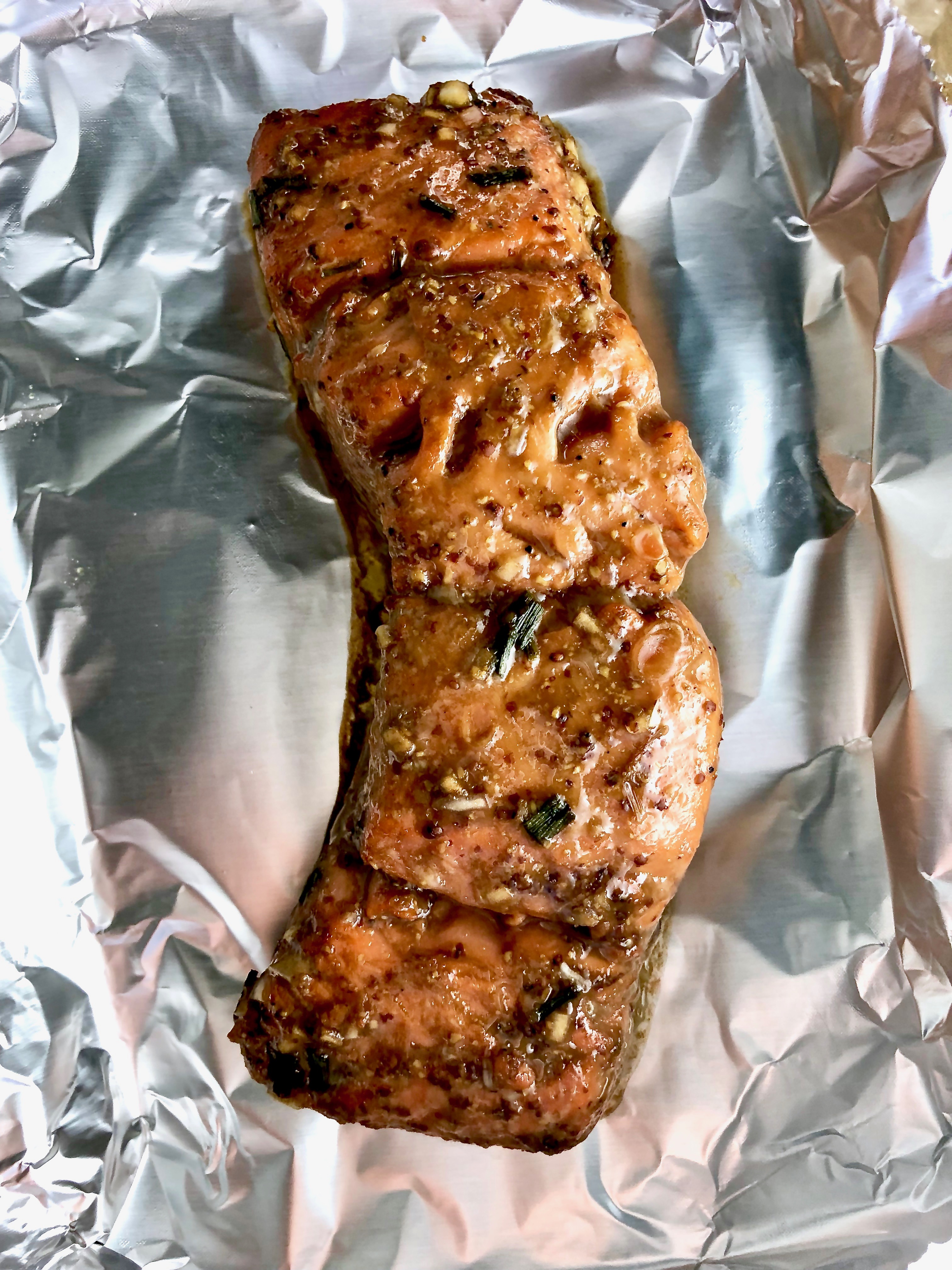 This marinade, which reduces to form the glaze as well, carries the depth and richness of a savory coffee rub combined with the sweetness, sauciness, and succulence of pure comfort food. Grainy Dijon adds texture, and garlic, chives, sea salt, and black pepper balance out the sweetness. (With a lot of glazes I feel like I’m just pouring sugar on my food–it just takes a few simple ingredients to make the sauce go so much further in flavor.)