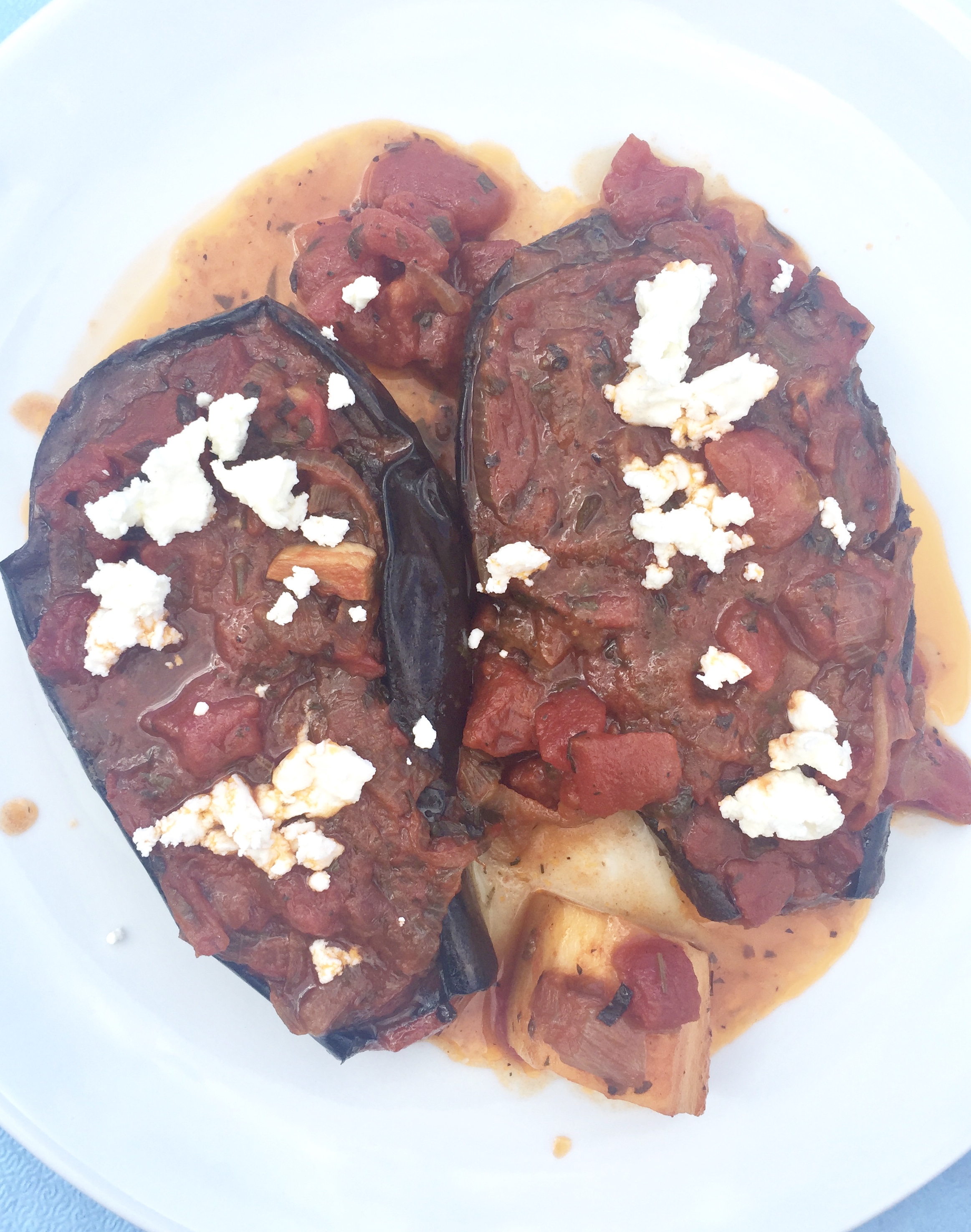 - loads of veggies like briam (eggplant, potatoes, onion, tomato, zucchini galore roasted with olive oil), horta (boiled flavorful greens), and more eggplant