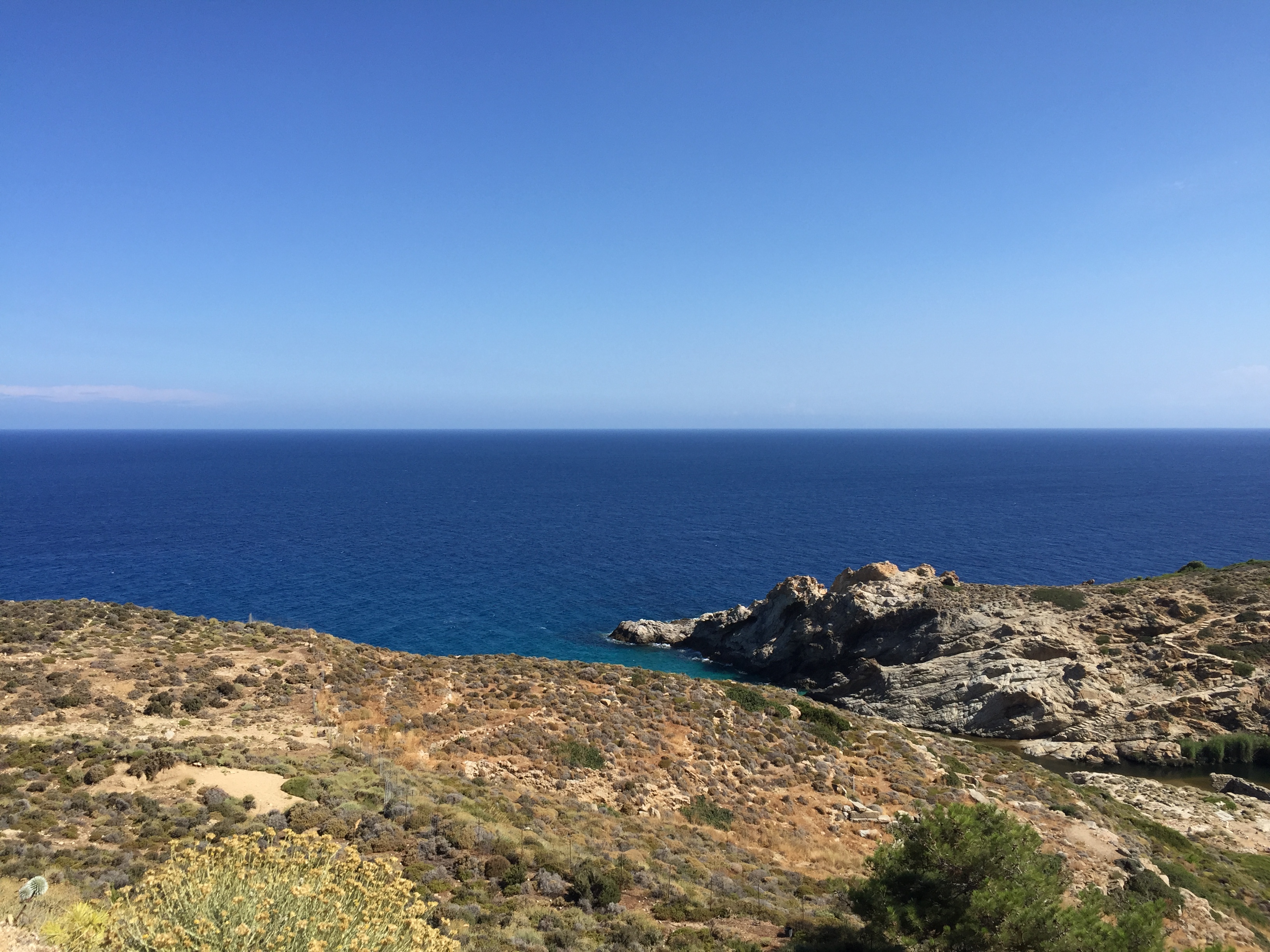 Immediately after arrival on Ikaria, we headed to Therma to soak in the natural, therapeutic hot springs. The “spa” portion was like a hot bath; after ten minutes, we transitioned to the “sauna” room, a small, dark enclave in the rocks with a temperature and humidity level just above my comfort zone. My first attempt at escape after eight minutes was thwarted by the owner, who ushered me right back. My buddy Logan made the last four minutes bearable with some soothing words, and upon emerging after the full session, I was glad I had stayed. We finished in the cool sea water and finally the magic hot tub built right into the sea.
