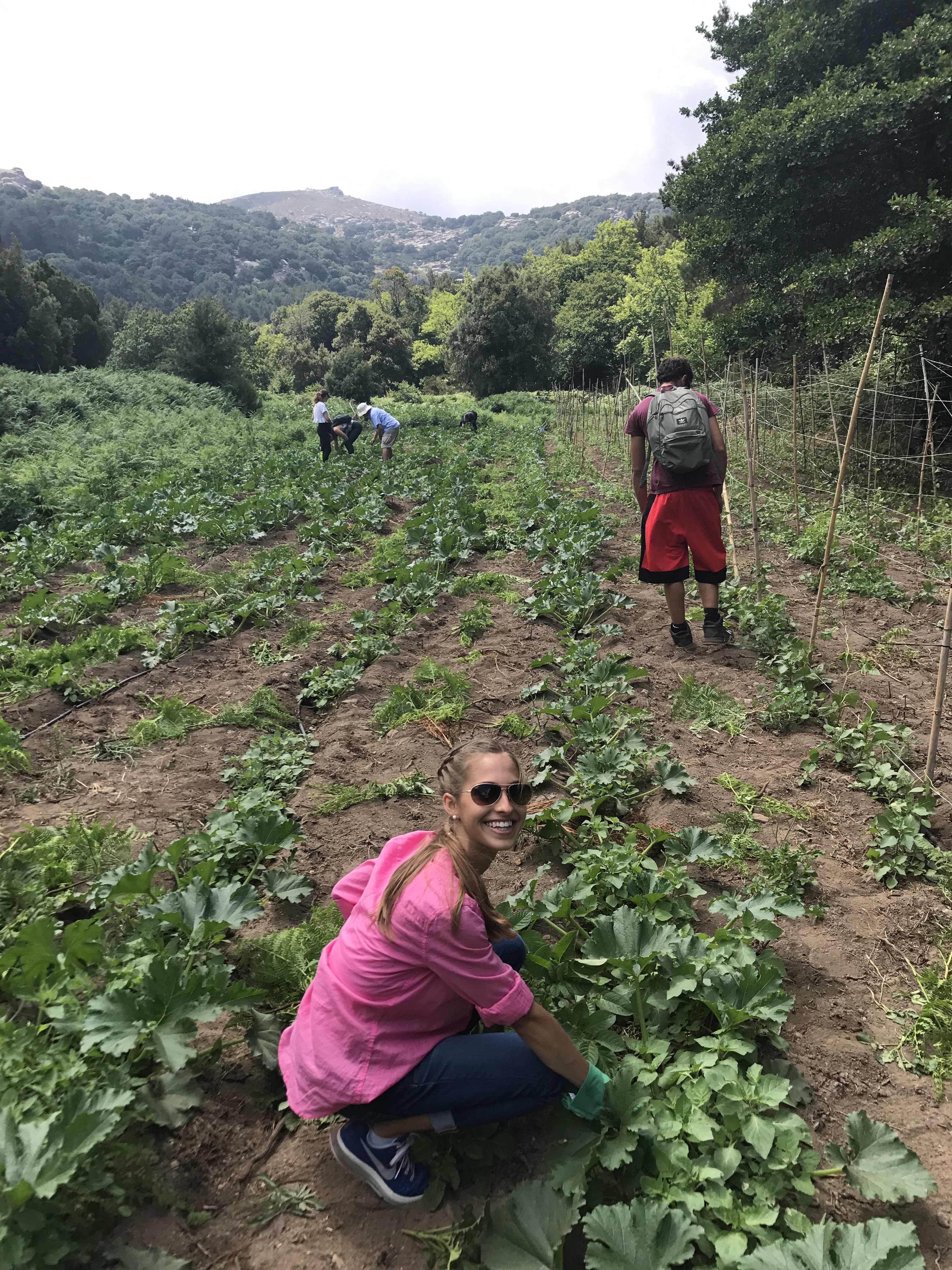 Tuesday morning, after another wholesome breakfast, we headed to Thea’s son’s farm to see where our meals began. Moreover, we got to weed the zucchini and eggplant plots…aka yank potatoes out of the ground, which is actually more fun than it sounds.