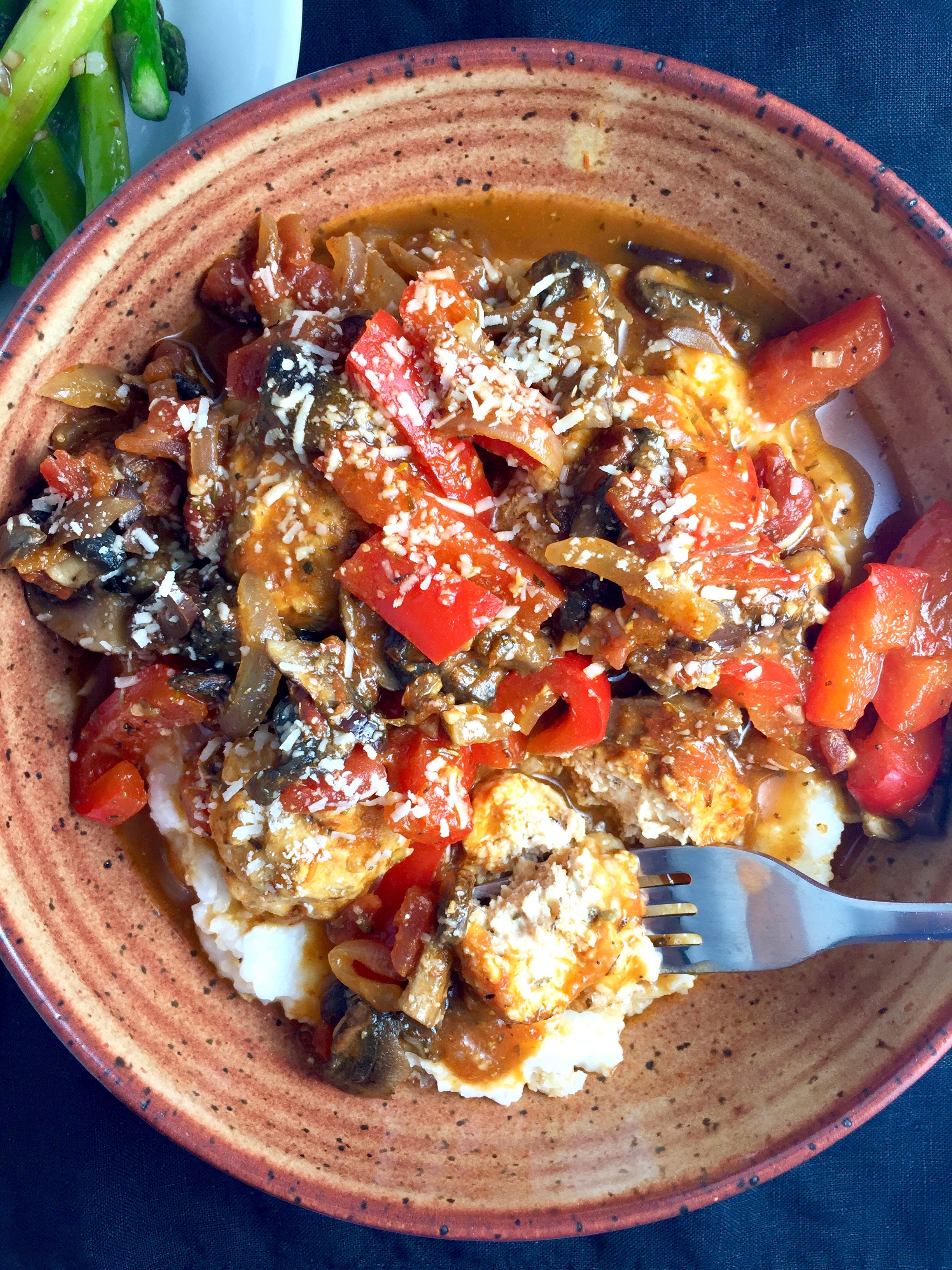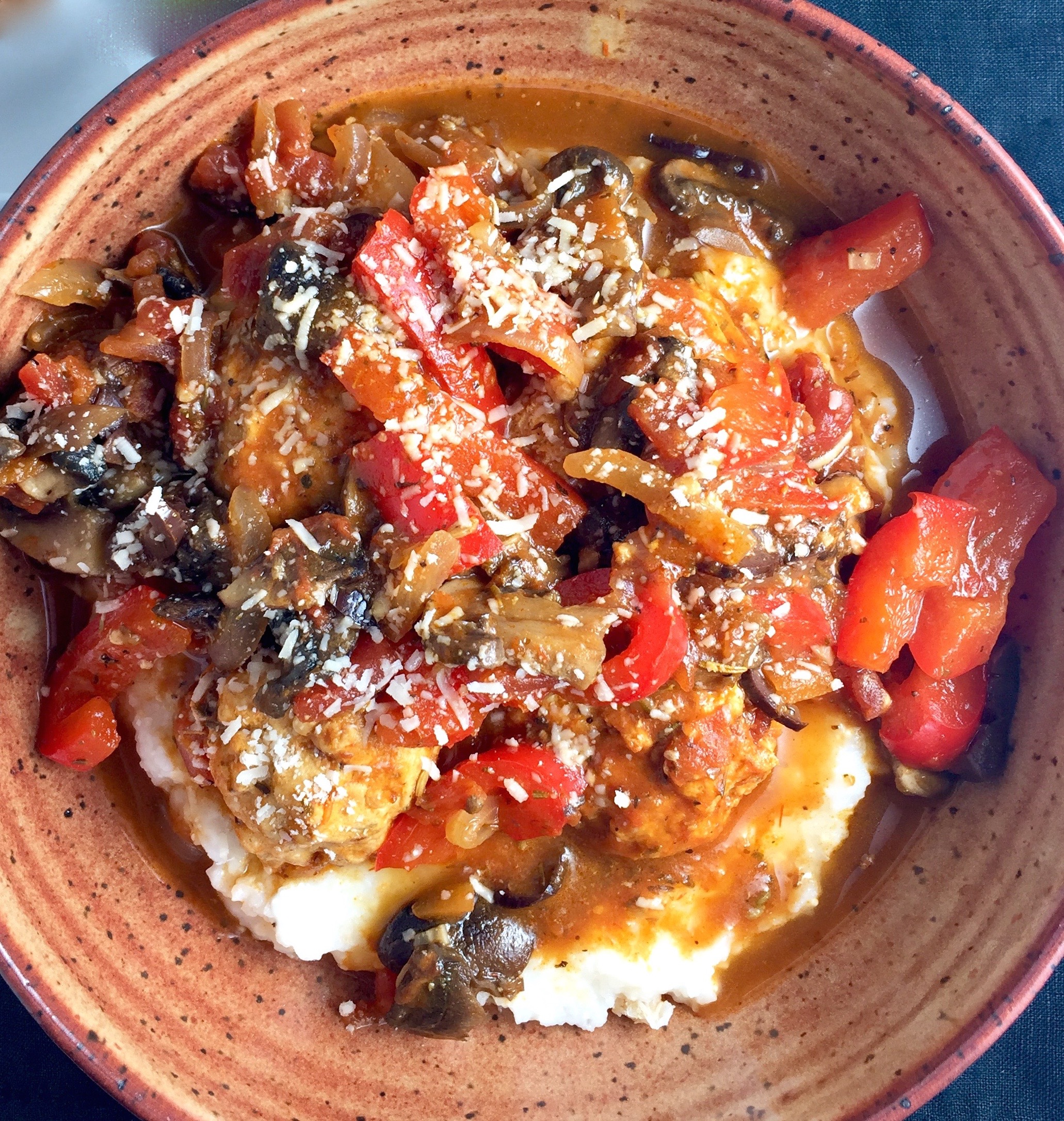 Chicken Meatballs in Pomodoro Sauce over Parmesan Polenta