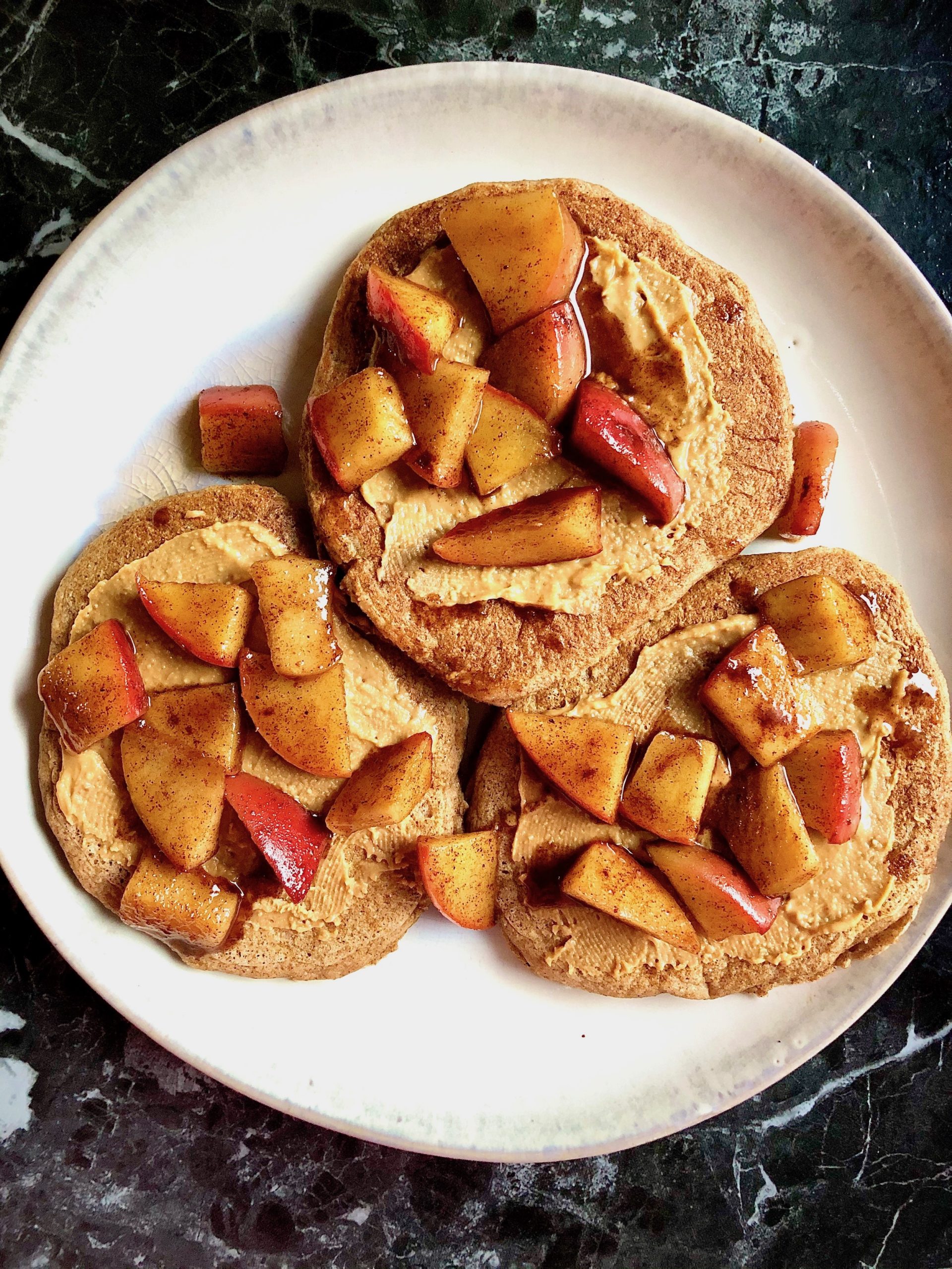 Spiced Whole Grain Apple Butter Pancakes {with Sautéed Maple Apples and Peanut Butter}