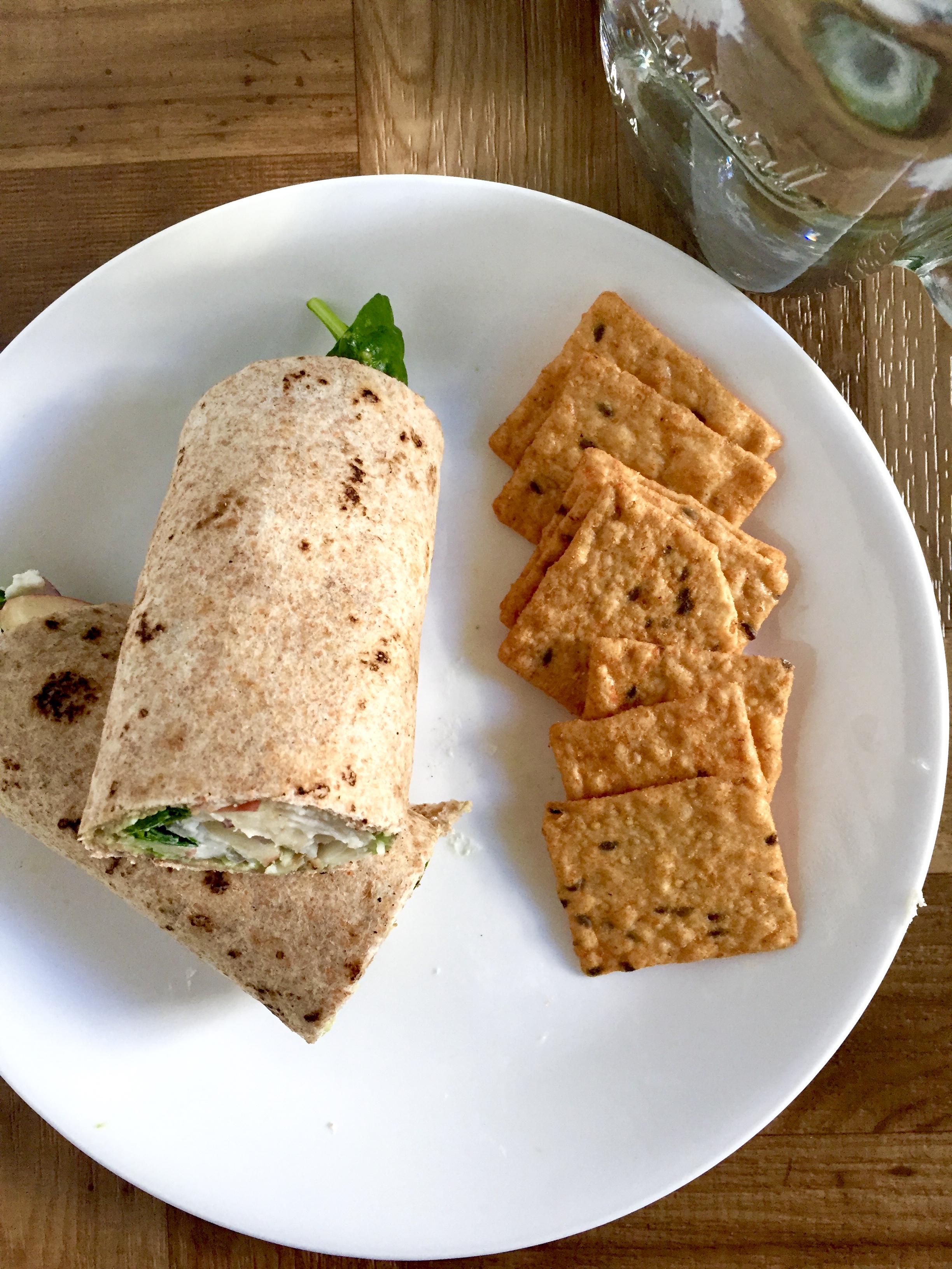 Turkey, crisp Fuji apple, creamy avocado, tangy goat cheese, toasted walnuts, fresh thyme, red onion and spinach bundled together in a whole grain tortilla for deliciously satisfying wrap. Perfect for a healthy lunch on-the-go or any time!