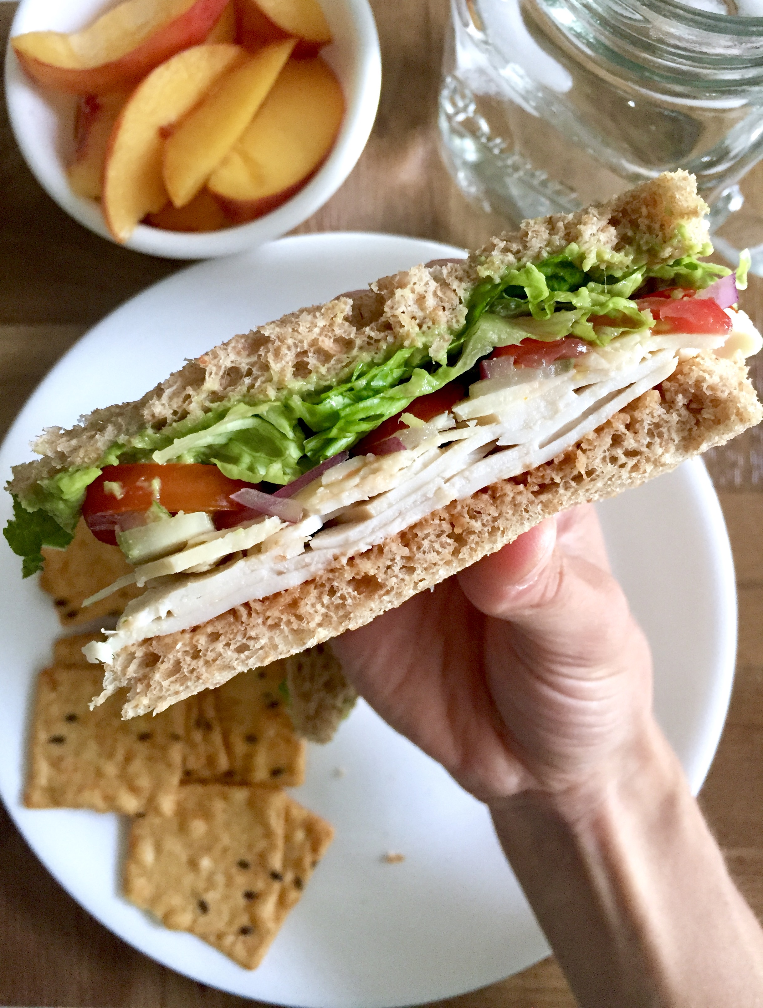 Turkey sandwiches have been one of my top lunch choices for as long as I can remember. Something about a big bite of hearty bread, meat, cheese, and veggies is just so satisfying. And the variations and combos for a healthy lunch are endless, so you never have to get bored! Here’s one of my favorites: