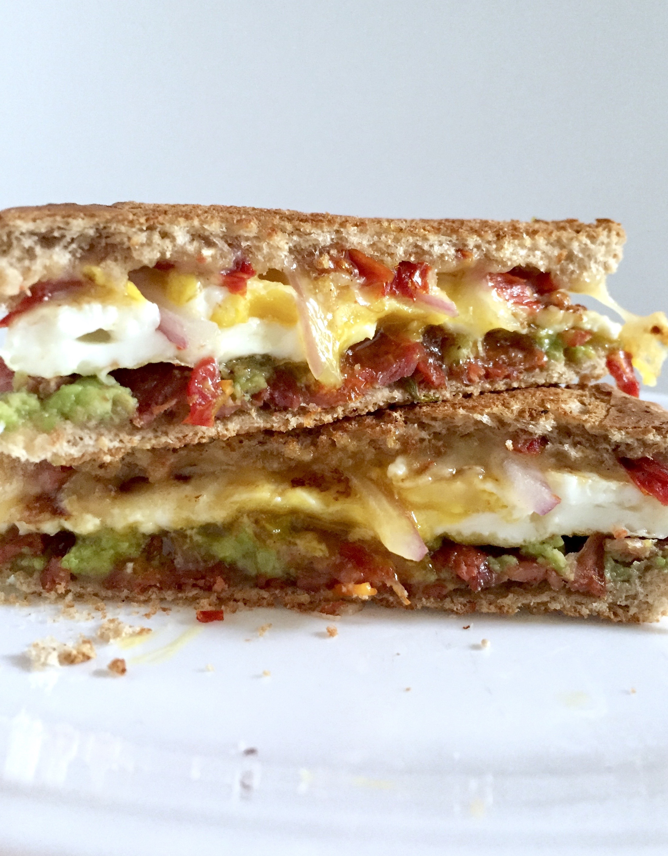 1. Egg Panini with Bacon, Avocado, Sun-dried Tomato, and Smoked Cheese