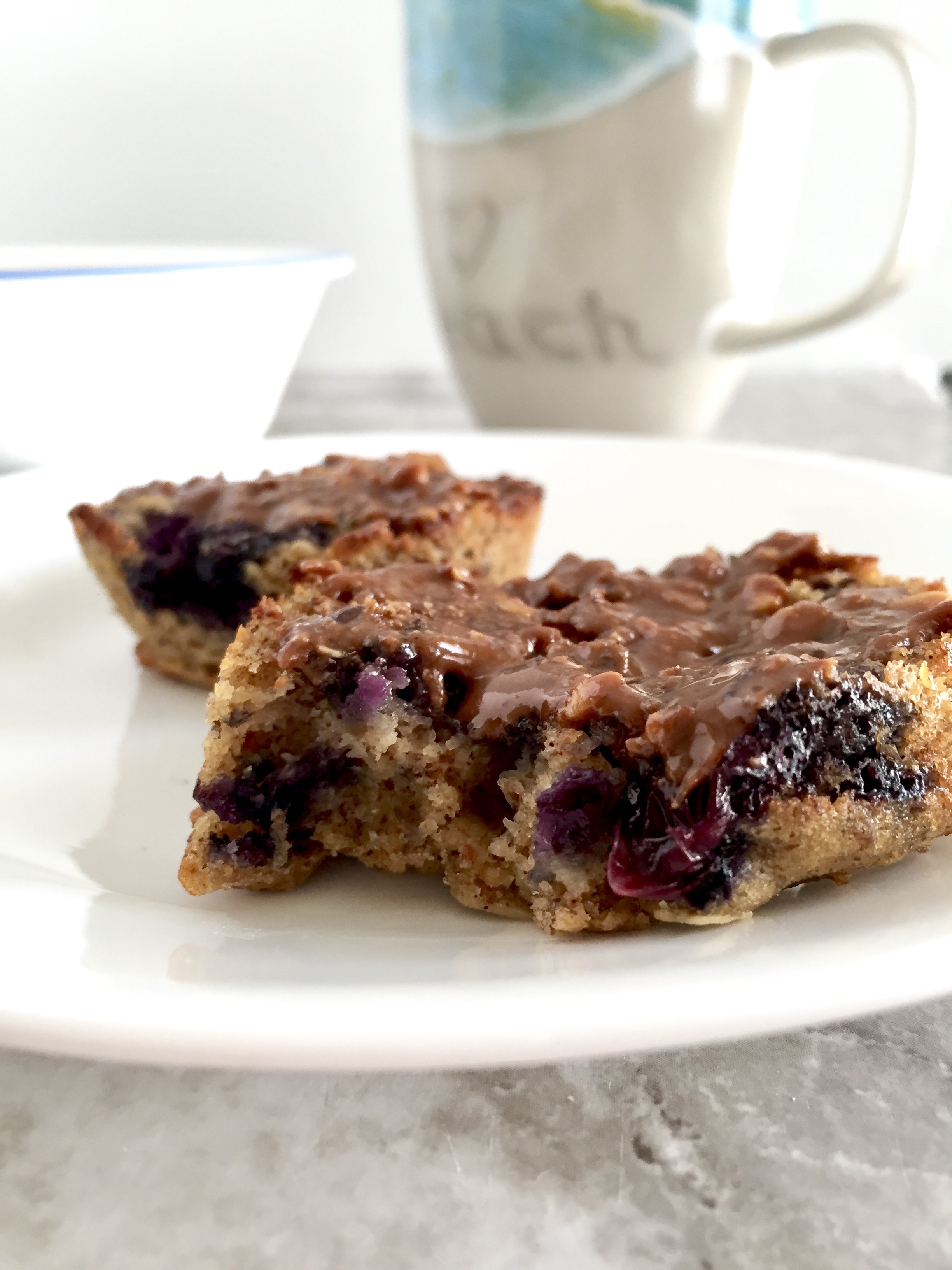 Blueberry Oat Flax Muffin + Chocolate Almond Butter