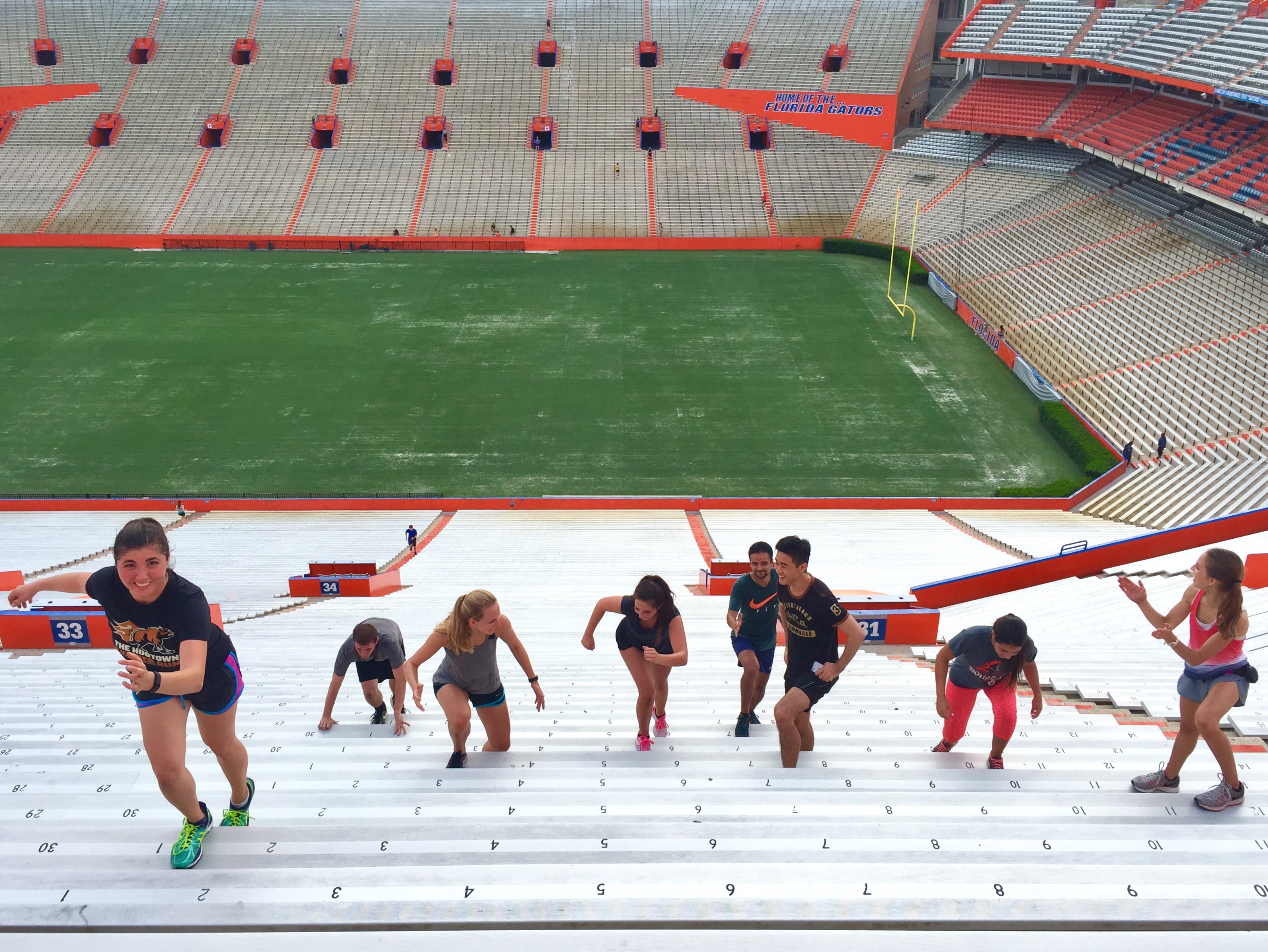I go all out for my classes, and double-time on Tuesdays this summer with Total Body and Stadiums. Gators, I’ll see you in the fall.? Both are an hour and high intensity. Total Body is essentially what it sounds like, and I make sure we get plenty of cardio, resistance, plyo, and core. Stadium Conditioning is on a level of its own, with running and climbing and shuffling and sprinting and strength training…all in the place that has my heart.